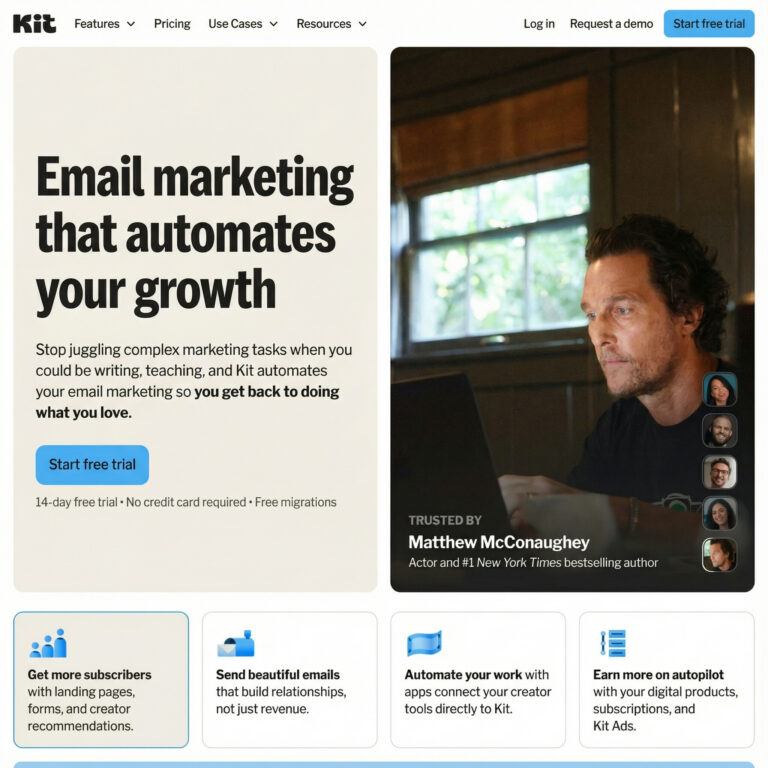 Build your email list with KIT EMAIL (even with low traffic). Your email list is something you own — and it helps you turn visitors into repeat readers and customers.